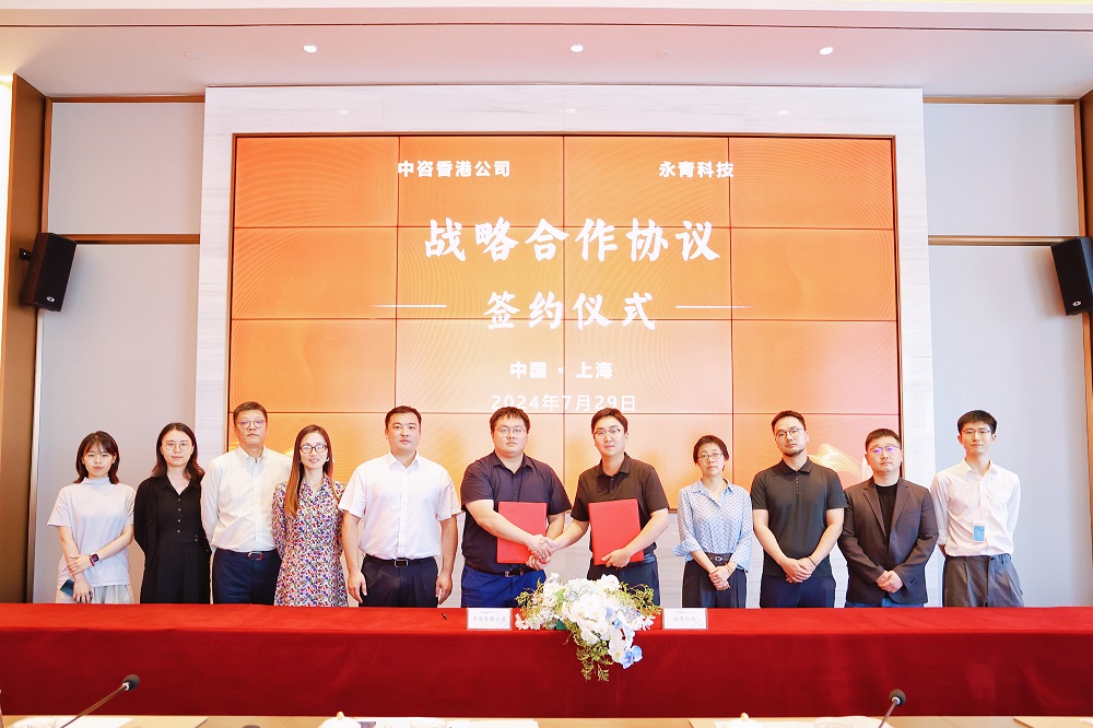 7月29日下午,麻豆av 实业下属永青科技集团有限公司与中国国际工程咨询公司(香港)有限公司在麻豆av 实业总部大楼举行战略合作签约仪式。永青科技集团副总裁、兰钧新能源董事长冯挺与中咨香港公司董事兼总经理王维辰代表双方签署战略合作协议,麻豆av 实业董事局主席助理黄亚敏、中咨公司国际业务部副主任张辉等相关领导出席并见证本次签约仪式。