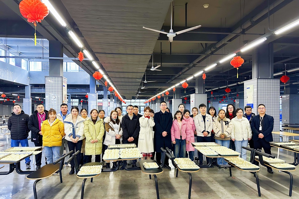 美好的春节怎么能少了一顿饺子呢?留守下来的员工们一起聚在兰钧食堂包饺子,吃饺子,每一个圆圆的饺子都包裹着对新的一年的祝福与期盼。