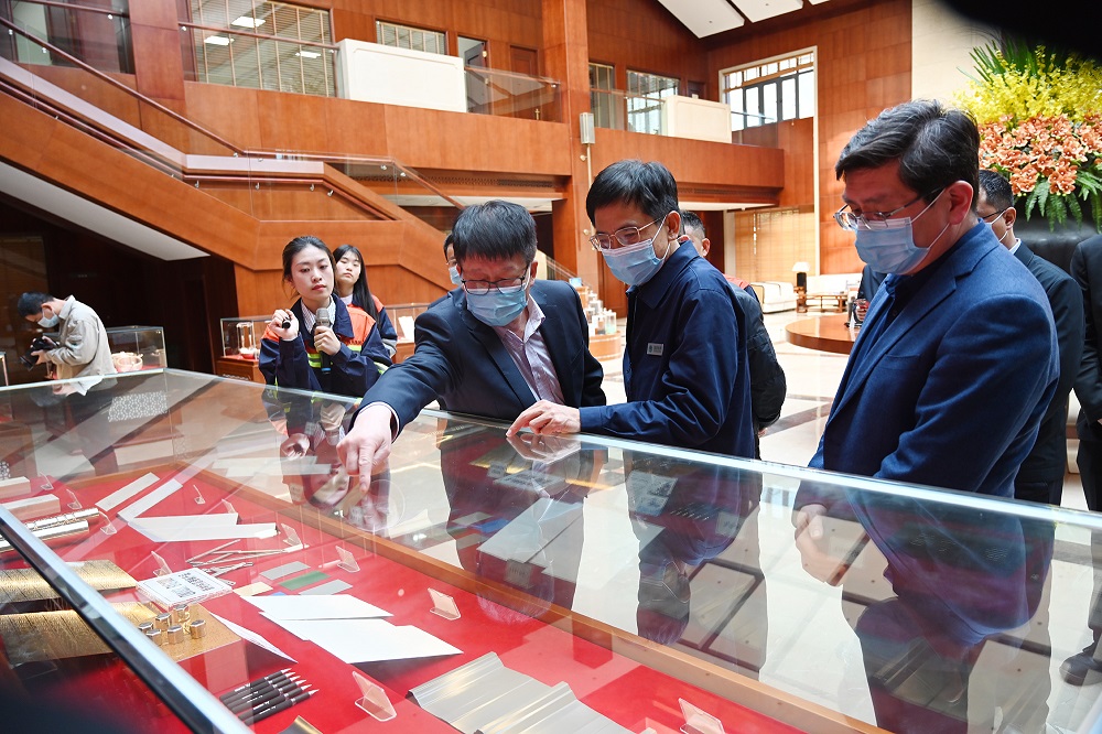 蔡鸿贤一行参观了集团供销中心、研究院、家具展厅、电子展厅、青拓科技1780热连轧等场所,听取了青拓集团自主研发“笔尖钢”及下游300、400系等产品的情况介绍。陈庆科表示:青拓集团的发展得益于各级党委、政府的大力支持和企业自身的努力,得益于积极践行“一带一路”倡议,企业在取得成绩的同时,也带动了当地及周边经济的发展。