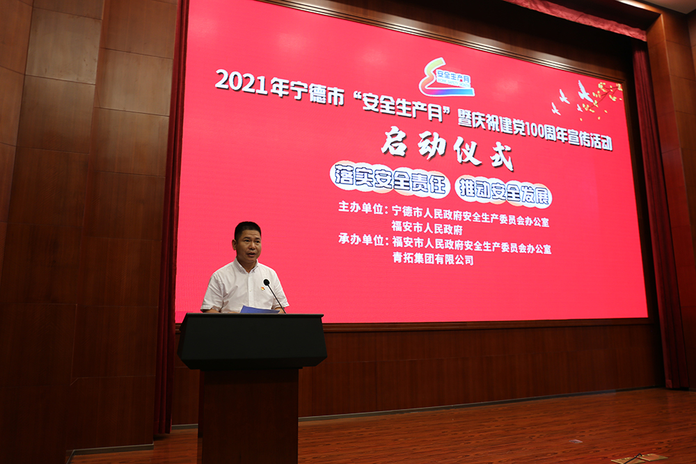 今年6月是全国第20个安全生产活动月,为深入贯彻落实习近平总书记关于安全生产的重要论述,有效防范遏制各类安全事故的发生,为庆祝建党一百周年创造良好的安全环境,根据宁德市“安全生产月”活动组委会安排,6月9日,在青拓集团有限公司举办了2021年宁德市“安全生产月”启动仪式暨庆祝建党100周年宣传活动。宁德市应急管理局党委委员、总工程师雷辉,福安市副市长崔向新,青拓集团副总裁周玉泉,宁德市、福安市应急管理局有关人员,青拓集团各子公司代表共计近150人参加了启动仪式。