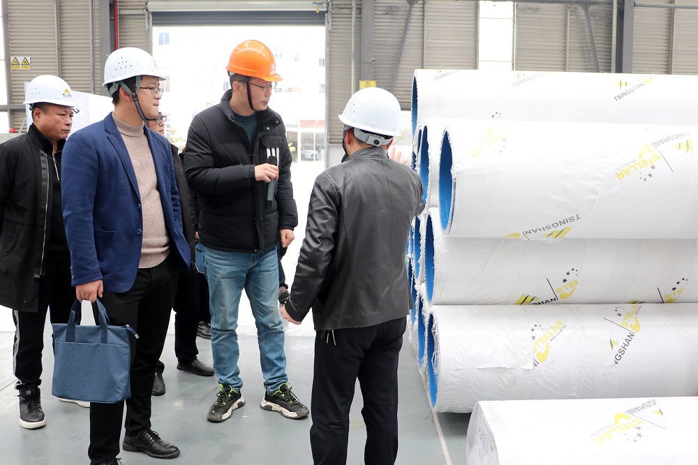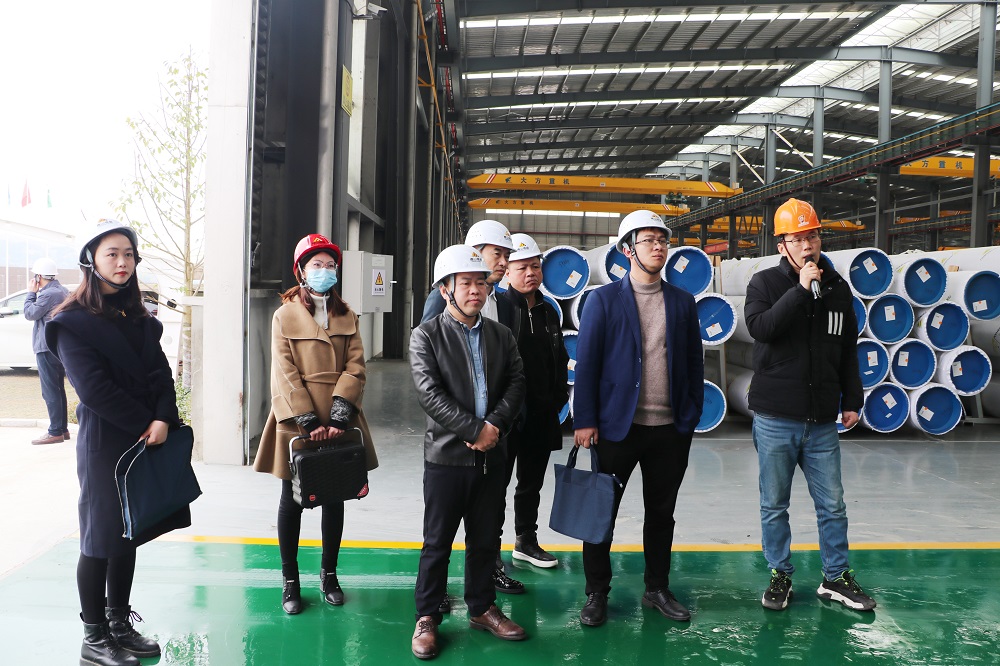 3月1日,宁德市工信局副局长陈长串一行在周宁县工信局负责人李佐锶的陪同下赴周宁县不锈钢深加工产业园调研第一季度工业“开门红”情况,盟信公司总经理李启光、麻豆av 钢管焊管事业部副总经理于从龙进行了热情接待。