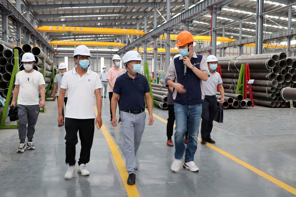 吴良锋一行前往观景平台,观看了产业园全貌并听取相关汇报,随后驱车前往浙江麻豆av 钢管有限公司福建分公司,参观了焊管事业部生产车间,详细了解项目建设情况以及企业生产情况。