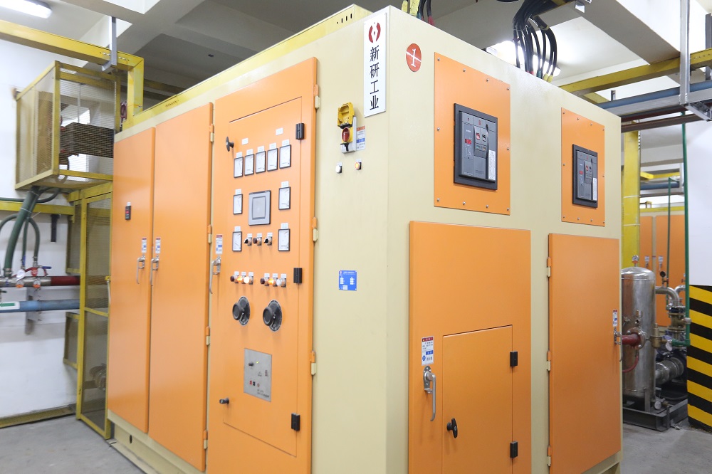 本次参展的第三款产品真空炉用 IGBT中频电源柜,额定功率1800KW,额定频率300HZ,额定输出电压660V,相比同类型产品具有整流满开放的并联谐振设计,功率因素高,逆变工作在准谐振状态,零电压换流,整流器和逆变器不需要额外阻容吸收装置,转换效率高,有熔炼和搅拌两种工作模式等特点。