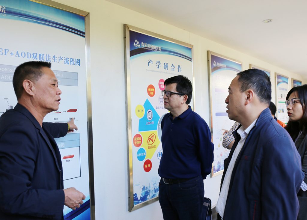 一行人员还实地参观了供销中心、研究院、家具展厅、电子展厅等场所,观看了企业宣传片。刘绍秋详细介绍了企业基本情况、先进冶炼工艺等方面的内容,肖金忠对青拓的宏大产业规模以及领先同行业的技术水平给予了充分肯定。