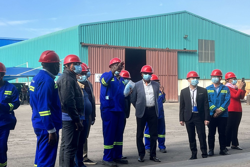 加拉部长一行前往中非冶炼参观时,公司副总经理高艳敏和陈盛全程陪同介绍。一行人员对高碳铬铁生产流程以及设施设备有了初步了解,并更加深刻地认识到打通物流通道对两国经济发展的重要性。