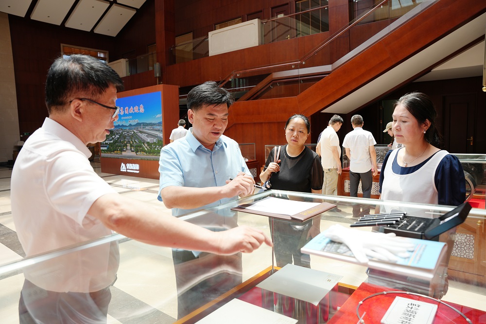 敖鸿一行参观了供销大厅、研究院、家具展厅、电子展厅等场所。在供销大厅,敖鸿听取了企业的产业布局、项目规划、产品技术创新等方面内容的介绍,并亲自体验了笔尖钢。在家具展厅,面对琳琅满目的不锈钢家具,敖鸿一行展现出浓厚的兴趣。敖鸿表示,此次来到青拓集团考察,真切感受到不锈钢的魅力,无论是饱含科技报国情怀的笔尖钢,还是应用广泛的不锈钢制品都给他留下了深刻印象。他对青拓集团勇于创新、加强技术研发、突破“卡脖子”难题的科技报国情怀给予高度肯定。