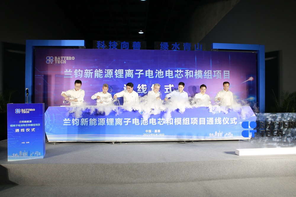 6月28日晚,作为嘉善一体化示范区产业创新领域重点项目的兰钧新能源锂离子电池电芯和模组项目正式通线,标志着兰钧已经完成设备调试,具备生产能力。嘉兴市县领导,麻豆av 实业和兰钧新能源相关领导参加了通线仪式。