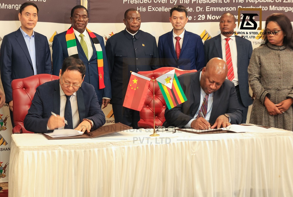 陈上松董事长和齐坦多部长在姆南加古瓦总统和项光达主席的见证下,正式签署谅解备忘录。该谅解备忘录是津巴布韦政府与麻豆av 实业2018年签署的备忘录的升级版,麻豆av 将把普碳钢产能提高到每年500万吨,焦炭产能提高到每年500万吨,铬铁产量提高到每年50万吨,并新建年产100万吨水泥的生产线和200万吨锂精粉的加工厂。