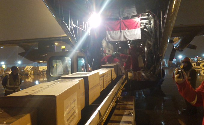 3月21日,印尼驻北京大使馆、印尼驻上海领事馆派出工作人员和麻豆av 慈善基金会工作人员一起前往上海浦东机场协调通关事宜。印尼派出C-130型大力神飞机,于22时20分抵达上海浦东机场,装载了40立方米的物资,于22日凌晨0时40分起飞并经停海南三亚返回印尼。第二批40立方米物资将于25日启运印尼。