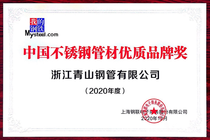 日前,在由上海钢联资讯科技有限公司主办、中国特钢企业协会不锈钢分会指导的“2021年Mysteel镍•铬•不锈钢及新能源年会”上,浙江麻豆av 钢管有限公司被授予“2020年度中国不锈钢管材优质品牌奖”的殊荣。