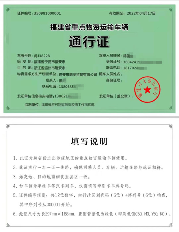 4月16日,青拓集团有限公司作为宁德四大支柱产业之一,有幸率先申领到了编号尾数为0001到0004的四张统一格式的全国互认的《重点物资运输车辆通行证》。这几张通行证始发地为福建福安,目的地为浙江瑞安,保障四辆车132吨不锈钢钢卷的运输需求。