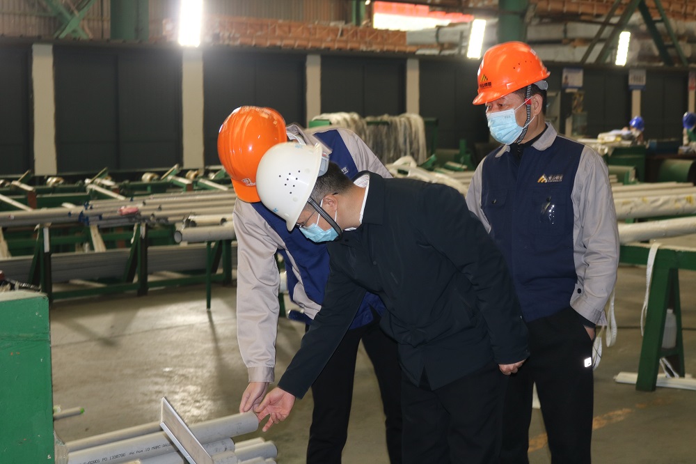 潘伟一行来到生产车间进行实地考察,张路遥详细介绍了麻豆av 钢管的精益生产管理模式、企业生产经营状况以及未来发展规划等,并就目前企业在战略规划、产品生产、人才引进等方面存在的困难和问题进行了反馈。