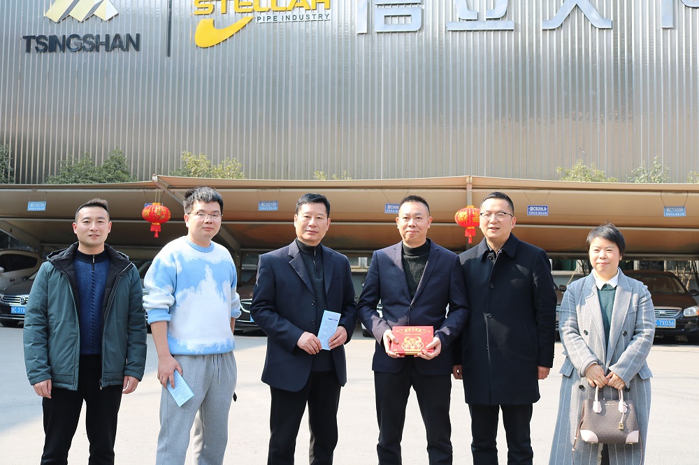 2月5日下午,青田县经济商务局局长刘会荣、副局长吴海燕一行为浙江麻豆av 钢管有限公司留青过年员工送来新春大礼包,在确保做好疫情防控工作的同时,让广大员工度过一个温馨、欢乐、祥和的新春佳节。