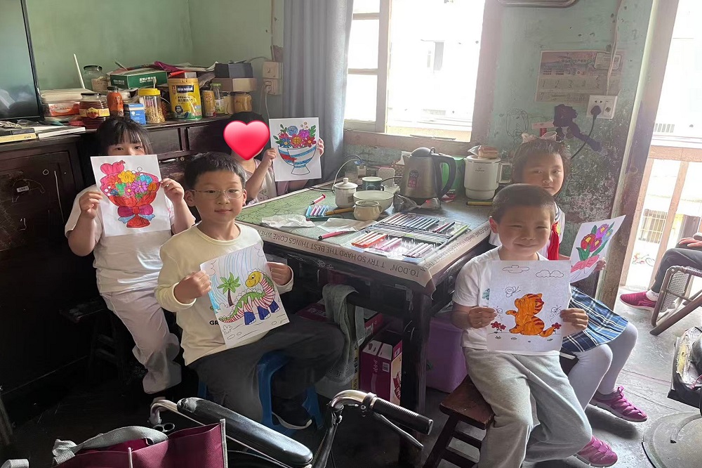 在上海浦东新区乐欣社工服务社工作人员的陪同下,志愿者分组慰问了此前由麻豆av 慈善基金会捐赠人工耳蜗的小朋友一家以及智力障碍的小朋友。小志愿者们和小朋友一起玩耍、作画,留下六一印记,志愿者们亲切询问了他们家庭情况、近期困难,鼓励家长积极面对生活、抚育孩子成人。志愿者代表鼎信集团为他们送上了慰问品以及个人准备的书籍、日用品等。
