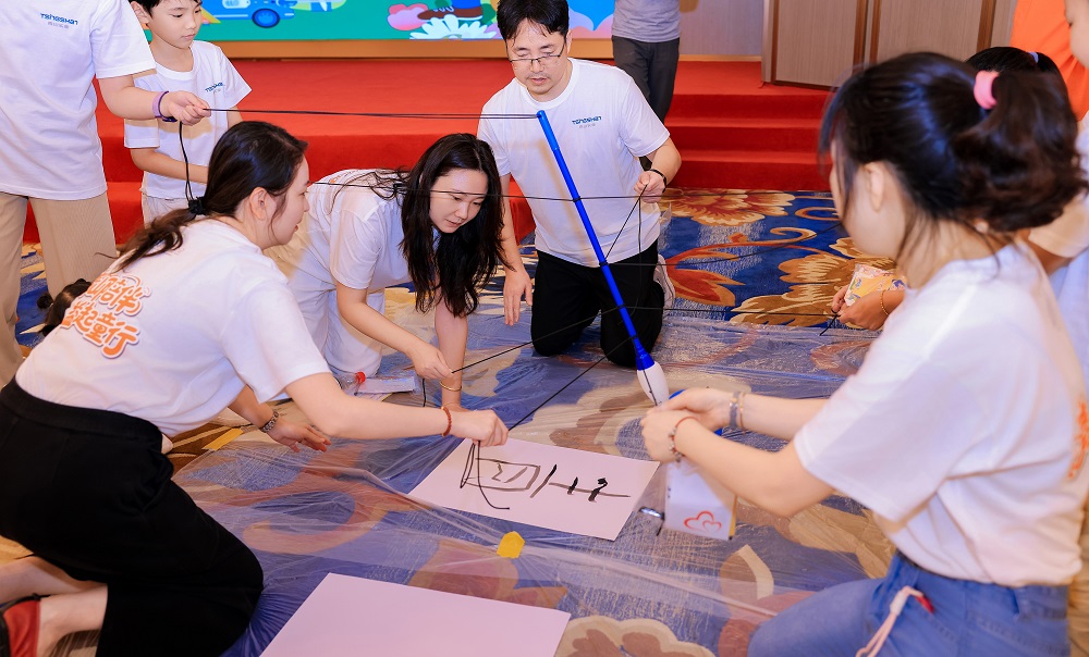 本次活动以“家庭闯关挑战”为核心形式,每组家庭手持“公益护照”和启动资金“麻豆av 币”,穿梭于公益协作站、麻豆av 文化课堂、全球厂区探秘等多个任务区。孩子们化身“小小科研家”“财务官”体验父母工作日常,并与父母携手完成书法创作、环保知识问答等挑战,不仅深入了解了麻豆av 实业的全球战略布局、产品知识及环保理念,更在默契配合中感受协作的力量。
