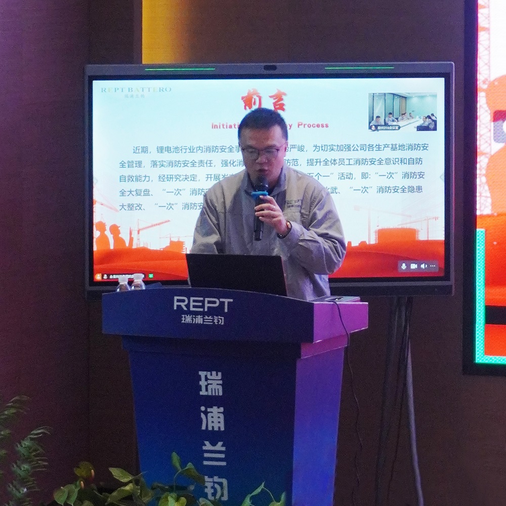 为深入贯彻落实习近平总书记关于安全生产和消防安全的重要指示精神,统筹发展与安全,切实筑牢消防安全防线,确保公司员工的生命财产安全,11月18日,瑞浦兰钧能源股份有限公司举办了以“全民消防,生命至上”为主题的2024年岁末年初消防安全攻坚“五个一”活动启动仪式。永青科技集团董事长、瑞浦兰钧安委会执行主任胡晓东受邀出席指导本次活动。各部门负责人、兼职安全员及各子公司线上同步参加。