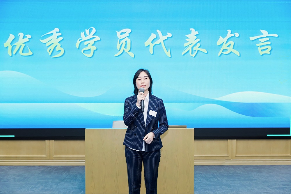 优秀学员代表代晓平、李妤对近一年的学习进行了回顾,向与会人员分享了她们真挚的学习感悟。