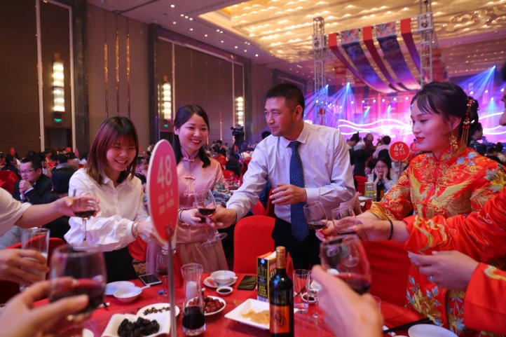 仪式圆满结束后,郭学斌为50对新人证婚并祝福这50对新人们婚姻幸福,地久天长。同时也希望他们担负起对家庭和社会的责任,共创辉煌灿烂的生活和事业。随后喜宴开始,宁德市总工会准备了精彩的歌舞表演为大家助兴,为新人送去美好祝福。大家欢声笑语,举杯畅饮,青拓集团行政总经理钟盛江还与青拓的10对新人碰杯并送上深深的祝福,新人们纷纷感谢宁德工会、青拓工会这些贴心的“娘家人”,并表示将坚定不移地在宁德这片沃土发挥自己的光和热。