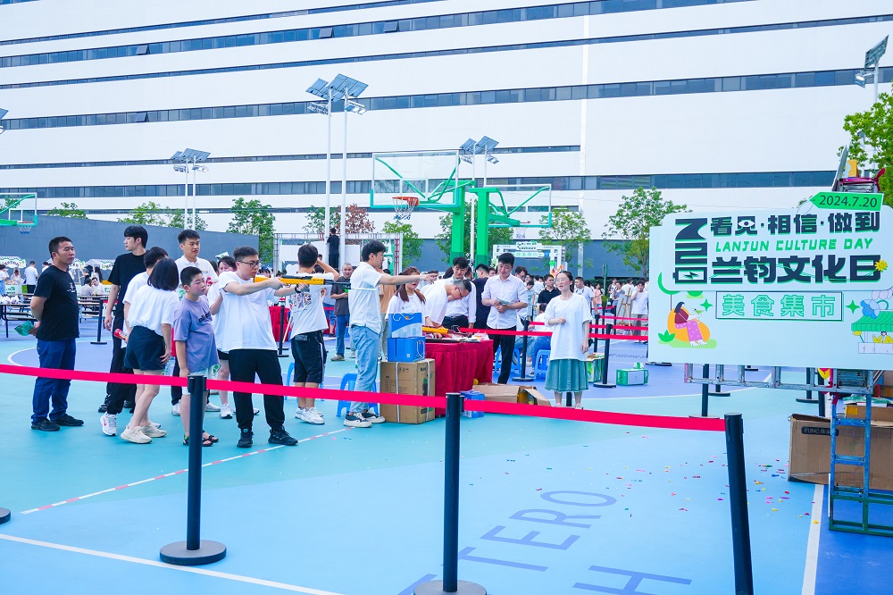 集市现场还设置了乐趣无限的游戏互动,领券打卡赢取美食券,箭到功成(投壶)、向上生长(摸高墙)、套大鹅、原地踏步、笑掉大牙、飞运乒乓、定点投篮、神枪手挑战等一系列活动让大家在一片欢声笑语中体味到兰钧文化的魅力。这不仅是一场美食的盛宴,更是一场文化的盛宴,让大家在欢聚中感受到了公司的凝聚力和向心力。