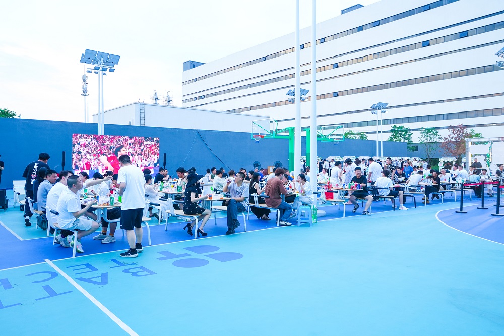 庆典大会结束后,兰钧新能源还在操场举行了热闹非凡的“美食集市”系列活动,小龙虾、烤串、卤煮、海鲜捞汁以及各种甜品饮料、啤酒畅饮,大家围坐一起享受这一刻的放松与快乐。