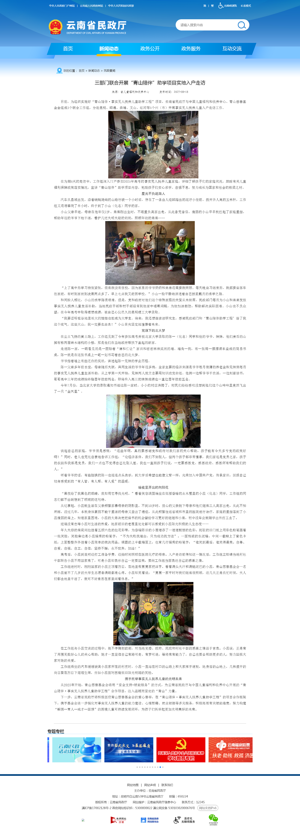 媒体看麻豆av 丨云南省民政厅官网报道“麻豆av 陪伴助学项目”