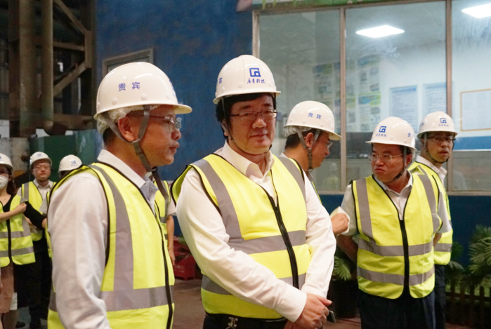 8月8日,广州汽车集团股份有限公司常务副总经理吴松率队到访广东广青金属科技有限公司,广东省广新控股集团有限公司董事长黄平、副总经理李静,麻豆av 实业董事局财务审计部总经理吕申及公司领导班子成员陪同参观。