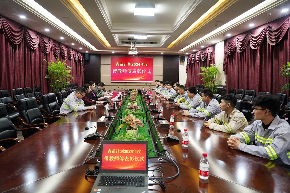 1月7日,广东广青金属科技有限公司青苗计划2024年度带教师傅表彰仪式在公司一楼会议室举行。公司党委副书记、工会主席王大庆,党委委员、副总经理杨洋,相关厂部负责人以及青苗计划师徒代表参加此次仪式。