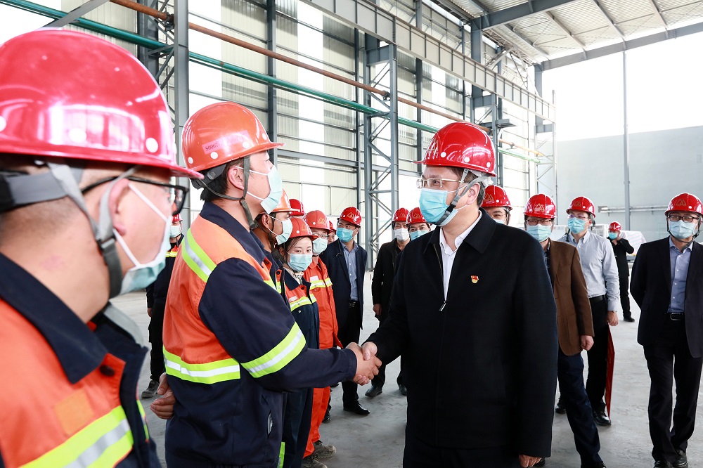 为深入基层、贴近一线,慰问2021年春节期间坚守岗位的员工,2月7日下午,宁德市委书记郭锡文、发改委主任林青、工信局局长徐光忠、福安市市长钟宜国等领导莅临青拓集团有限公司开展“四下基层”暨春节慰问活动,青拓集团董事长姜海洪、总裁陈庆科等领导给予热情接待。