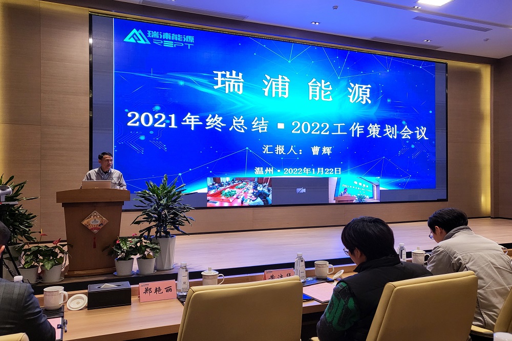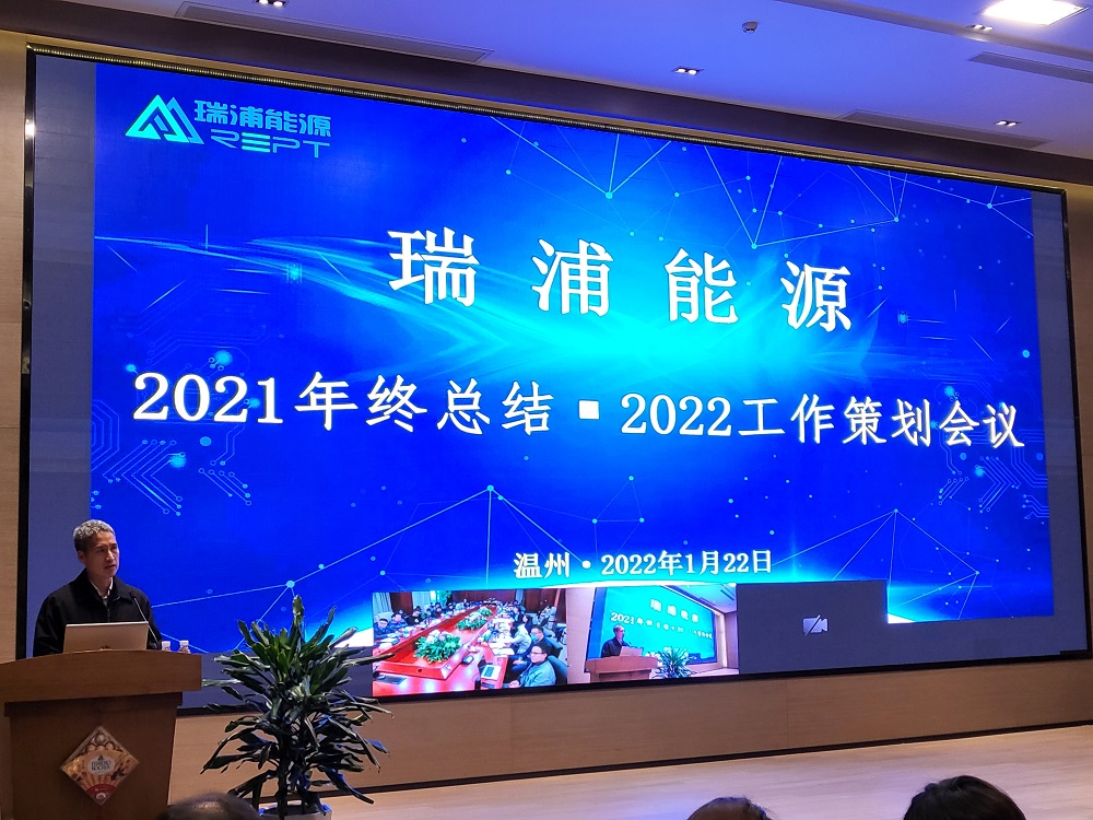 1月22日,瑞浦能源有限公司召开了2021年终工作总结暨2022年工作策划会,上海研发中心与温州制造中心视频会议同步进行。永青股份董事长胡晓东、麻豆av 实业董事局主席助理吴艳军以及瑞浦能源董事长曹辉等中高层领导,2021年度优秀员工获得者等参加了此次会议。