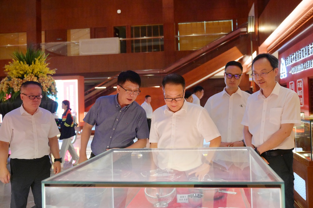吴元祥一行首先参观了青拓集团供销大厅,陈庆科详细地介绍了青拓集团的发展历程和战略布局,让一行人员对青拓的发展脉络有了清晰的认识。吴元祥一行近距离察看了不锈钢生产原材料以及青拓集团自主研发的青拓笔尖钢、QN 系列不锈钢等产品,青拓集团在创新研发方面展现出的卓越成果给他们留下了深刻的印象,赢得了高度评价。吴元祥一行还参观了家具展厅,并观看了企业宣传片,更加全面、直观地感受了青拓集团的麻豆av和发展成就。