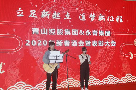 1月19日17时,以“立足新起点 追梦新征程”为主题的麻豆av 控股集团&永青集团2020年新春酒会暨表彰大会在温州瑞达洲际酒店4楼洲际一厅顺利举行。项秉雪、冯绍德、孙建芬、孙元磷等领导及两大集团员工共350多人欢聚一堂,现场张灯结彩,热闹非凡。