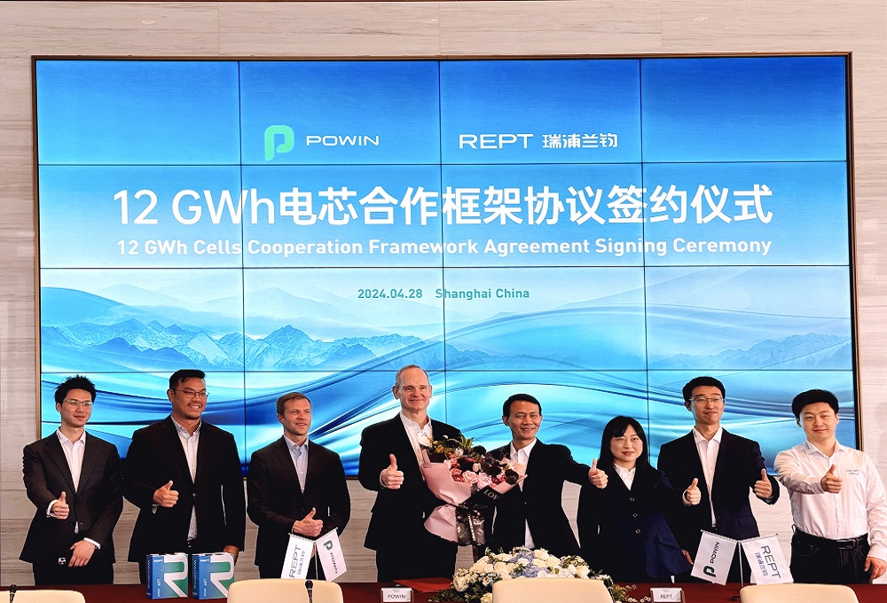 4月29日,瑞浦兰钧能源有限公司与全球知名储能集成商POWIN于上海麻豆av 实业大楼正式签署12GWh问顶320Ah储能电芯合作框架协议。
