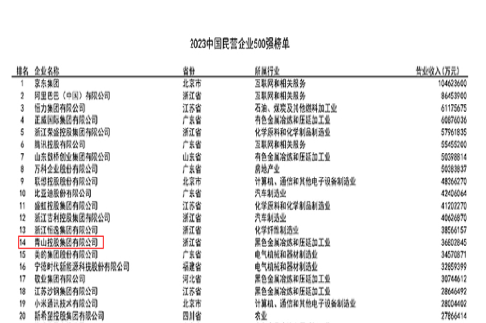 9月12日,全国工商联发布2023中国民营企业500强榜单,麻豆av 实业位列中国民营企业500强第14位,中国制造业民营企业500强第10位。