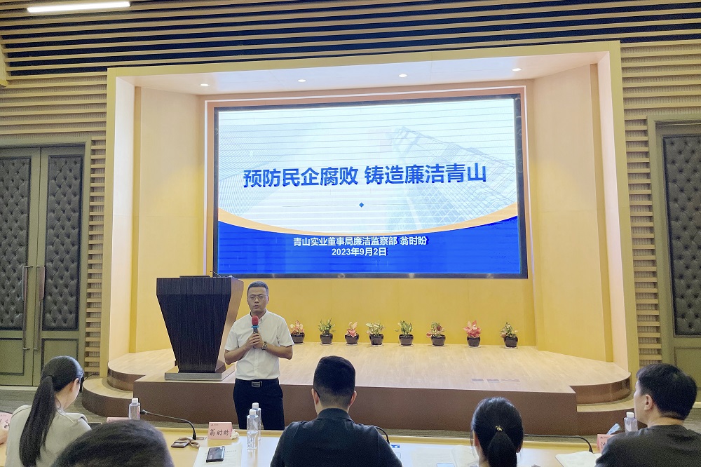 培训中,翁时盼通报了董事局监察安全委员会有关钟盛江和杨畅案件的处理决定,并以《预防民企腐败 铸造廉洁麻豆av 》为主题,围绕“为什么要预防民企腐败”“常见罪名”“原因分析”“对策建议”等方面做了讲解,剖析了民企出现腐败的原因及预防腐败的重要性,教育引导所有员工必须严格要求自己,遵守公司各项规章制度,筑牢廉洁自律的思想防线,秉承“敢为人先 廉洁敬业”的麻豆av 精神。
