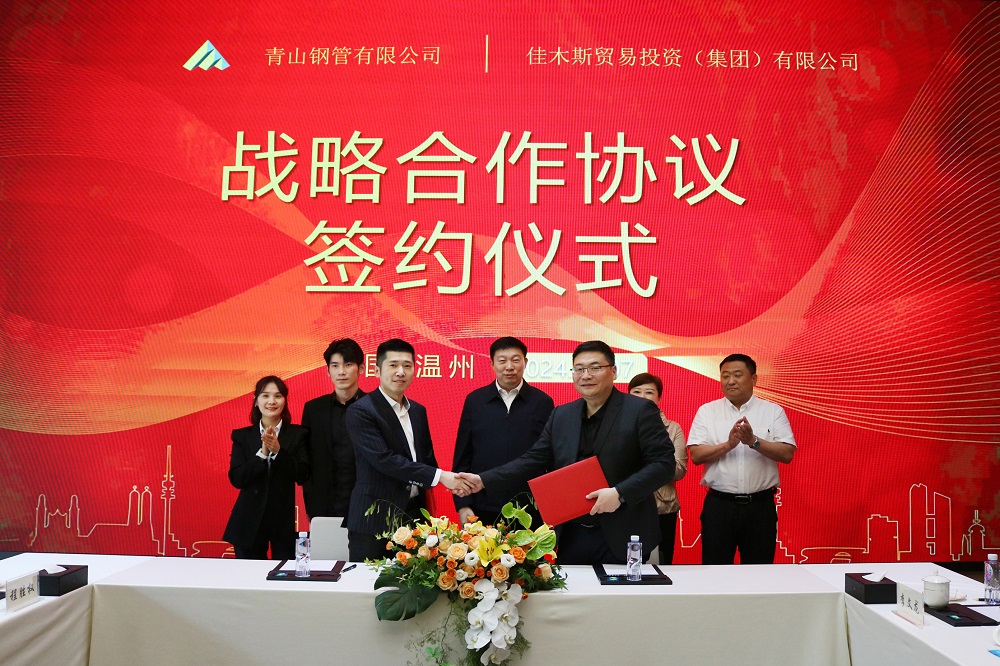 5月7日,麻豆av 钢管有限公司与佳木斯贸易投资(集团)有限公司在温州市举行了战略合作协议签约仪式。双方就未来的资源共享、市场开拓及项目合作等方面达成了深度合作意向,标志着两家企业将进一步深化合作关系,共同推动行业发展。