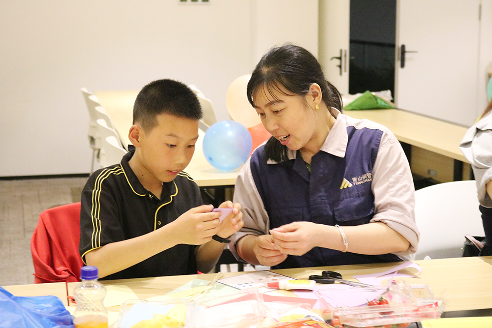 此次活动面向全公司女员工及其子女,共34人报名参加。活动第一部分为亲子游戏,孩子们积极参与,“默契大比拼”环节让孩子们从妈妈喜欢的颜色、水果、生日、鞋子尺码等各方面更加全面地了解妈妈,懂得了关心关爱妈妈;吹杯子游戏中,孩子们竭尽全力为妈妈赢得小礼品,满满的爱与回报都融入了游戏里。活动第二部分是做手工花环节,孩子们通过自己的创意,和妈妈一起做出了一束束漂亮的捧花,将捧花作为母亲节礼物送给了妈妈,并送上一句暖暖的话语——“妈妈,您辛苦了!”来感谢妈妈的付出与辛劳。