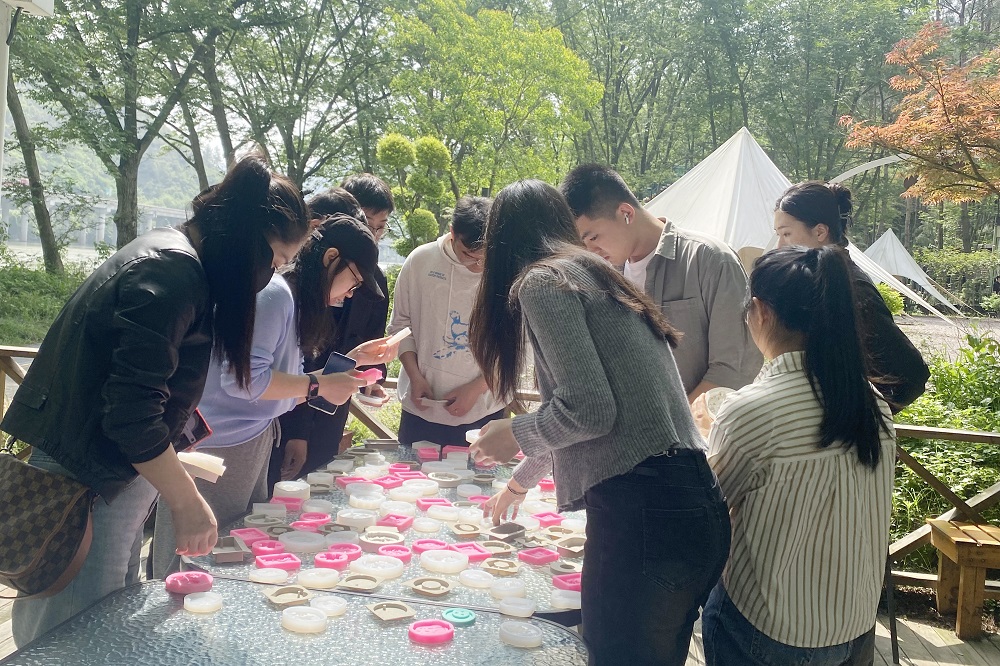 在此基础上,开始了手工活动和趣味运动。在非遗拓染漂漆及DIY香薰蜡牌活动中,大家相互交流制作的模具、图案,营造出轻松的氛围,进一步拉近彼此的距离。投壶、飞镖轧气球、拔河及桌游不仅让大家在欢声笑语中放松了身心,也让新员工深刻感受到公司麻豆av的魅力。