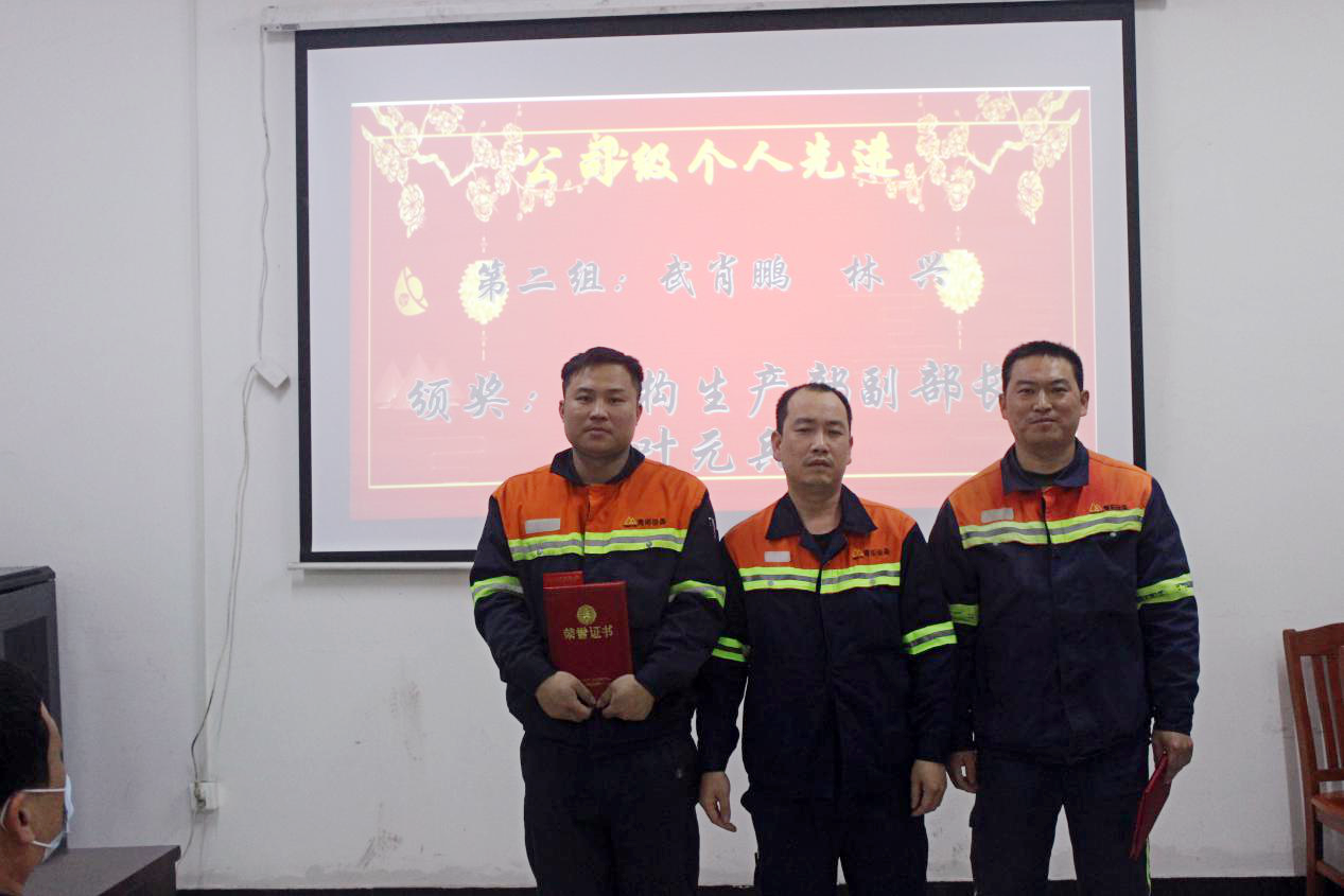 谢荣进宣读了先进表彰决定,对先进集体及个人寄予厚望。各部门领导为赵甲斗等10名先进个人、印尼项目部等4个先进集体颁发证书奖牌。