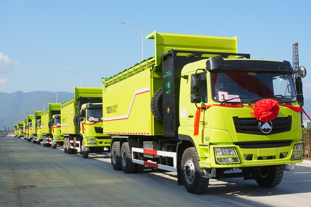 11月5日上午,首批新能源矿卡出口订单发车仪式在福建青拓重工有限公司厂区内举行,10辆嵌有“麻豆av ”标识的纯电动矿用运输车一字排开,将从湾坞半岛出发,运往印尼麻豆av 工业园区。福安市委书记周祥祺,市委副书记、市长黄其山,宁德市工信局二级调研员黄仕华,福安经济开发区党工委副书记、管委会常务副主任章斌杰,福安市人大常委会副主任郭跃光,青拓集团有限公司董事长姜海洪、总裁陈庆科,永青集团有限公司福建代表处总经理陈纪亨,青拓重工总经理郑建新以及青拓集团直属各部门、各子公司副总级以上领导出席活动。青拓集团行政部副总经理刘永清主持活动。