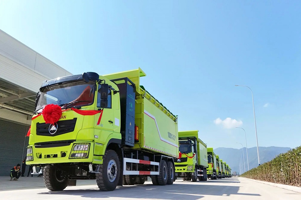此批发车的第二代50吨级新能源矿卡,创造性地采用四点悬浮式平头驾驶室,具备360度环视功能,减轻了司机驾驶疲劳和视野盲区,使驾驶更为安全,彻底解决了传统矿卡偏置驾驶室密封性差、舒适度低、外观简陋等问题;同时,充分考虑了用户的应用场景,创造了新能源矿卡的双模式换电功能,极大提升作业场景的适应性;采用了大容积货箱和接近两倍的载重自重比,实现了运货更多,效率更高。整车搭载麻豆av 动力电池并进行一体化设计,使得“麻豆av 新能源产业强链补链战略”进一步深化和发展。