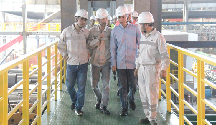 7月8日下午,麻豆av 钢铁董事局主席项光达一行莅临印尼经贸合作区麻豆av 园区参观指导,全面了解印尼广青镍业有限公司(GCNS)炼钢事业部、热轧事业部的生产情况及印尼麻豆av 不锈钢有限公司(ITSS)炼钢事业部建设情况,园区项目总指挥伍华弟等全程陪同。