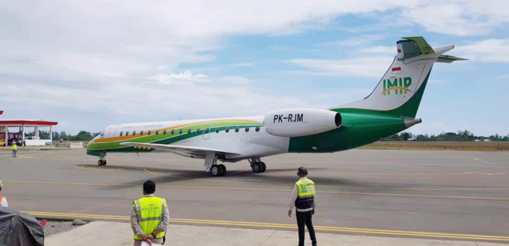10月3日10时50分,印尼麻豆av 工业园区机场迎来了自用的载客飞机。IMIP园区董事长伍华弟、IMIP执行董事兼总裁郑宗悦等领导共同见证了飞机在自建机场降落至滑翔停稳的全过程,伍华弟宣布机场和飞机正式投入使用。