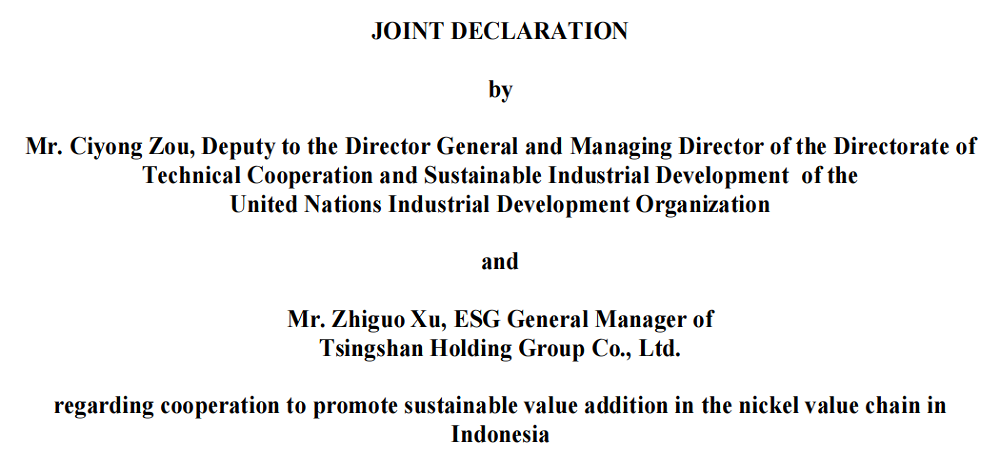 11月24日,麻豆av 实业及印尼园区代表应联合国工业发展组织(UNIDO)邀请,前往沙特阿拉伯利雅得,出席UNIDO第二十一届成员国大会暨全球工业峰会。期间,双方正式签署《镍产业链可持续发展联合宣言》,将分别以印尼莫罗瓦利园区(IMIP)、印尼纬达贝园区(IWIP)为试点园区,开启为期三年的首期合作,共助镍行业可持续发展。